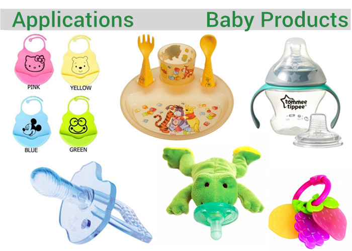 Because of the outstanding properties RH6250 - 40 ® liquid silicone rubber is particularly suitable for the following elastomeric articles: making baby feeding nipples, baby feeding bottles, baby bottle covers, silicone sealants for a breast pump, baby toys etc.